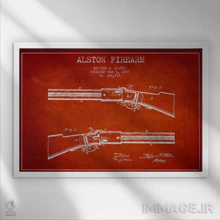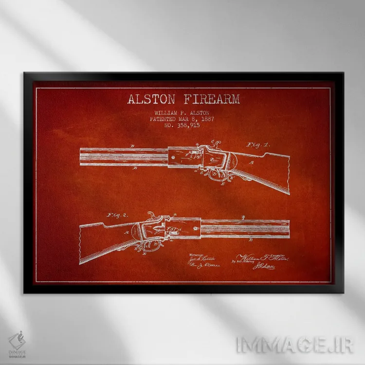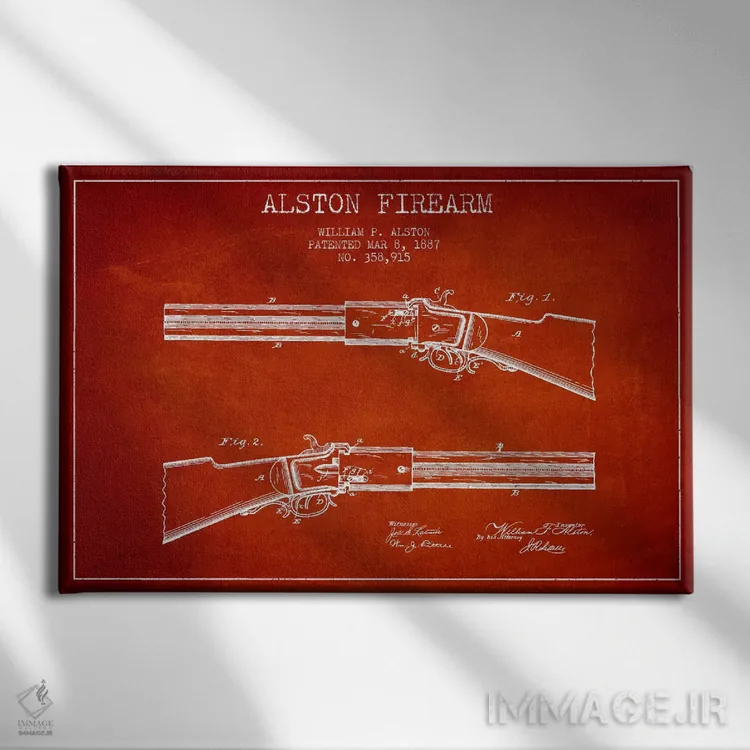 تابلو نقشهٔ ثبت اختراع سلاح آستون قرمز اثر پیکسل کهنه (استودیو/نام هنری)