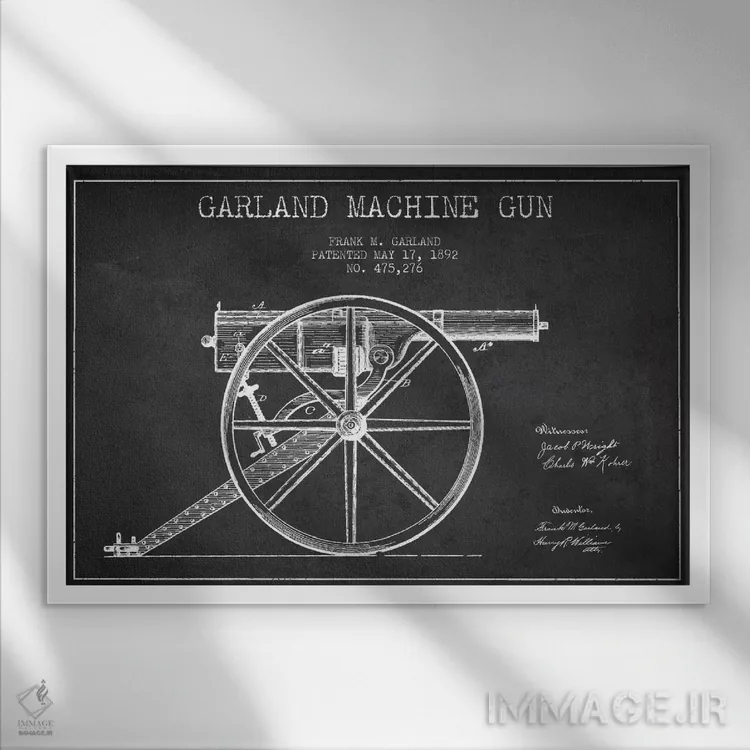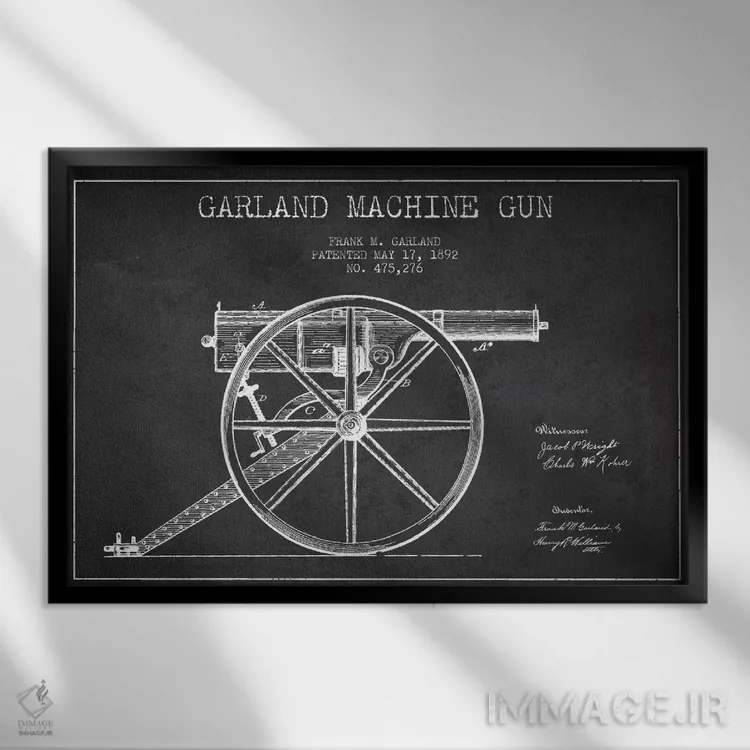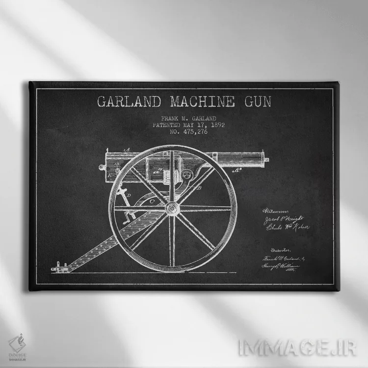 تابلو نقشهٔ ثبت اختراع اسلحه گارلند ذغالی اثر پیکسل کهنه (استودیو/نام هنری)