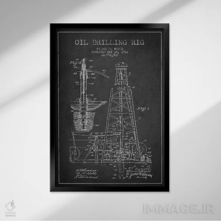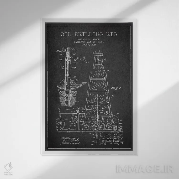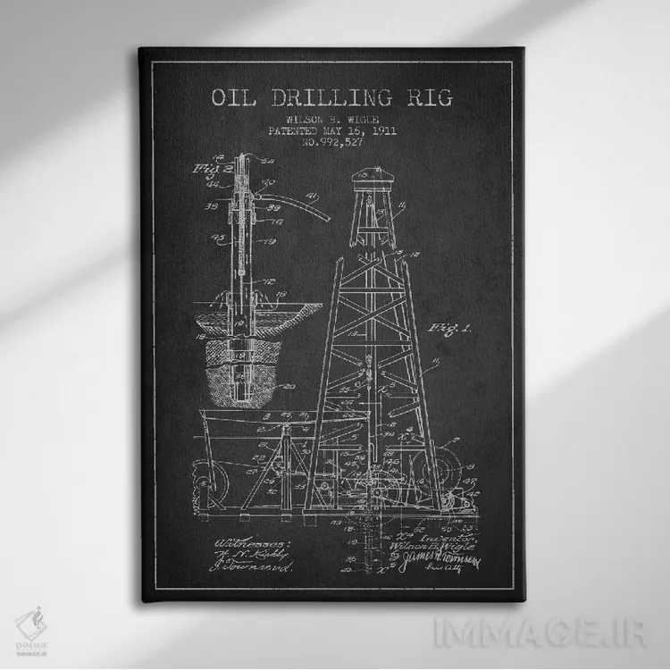 تابلو نقشهٔ ثبت اختراع دکل نفتی ذغالی اثر پیکسل کهنه (استودیو/نام هنری)
