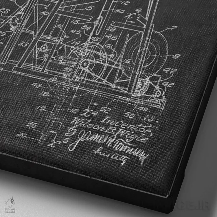 تابلو دکوراتیوِ «نقشهٔ ثبت اختراع دکل نفتی ذغالی»؛ مناسب برای فضاهایی با چوب تیره، چراغهای گرم و اکسسوریهای کلاسیک اثرِ «پیکسل کهنه (استودیو/نام هنری)».
