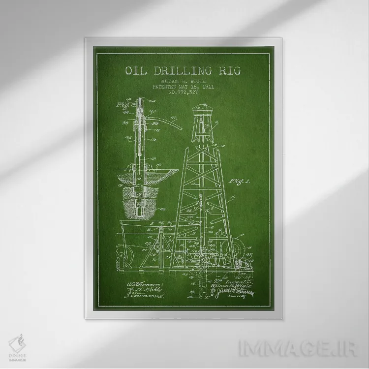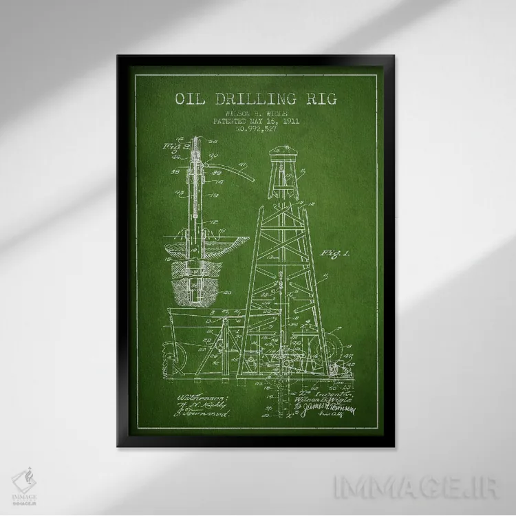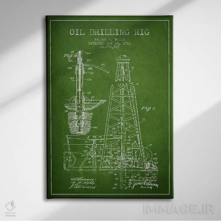 تابلو نقشهٔ ثبت اختراع دکل نفتی سبز اثر پیکسل کهنه (استودیو/نام هنری)
