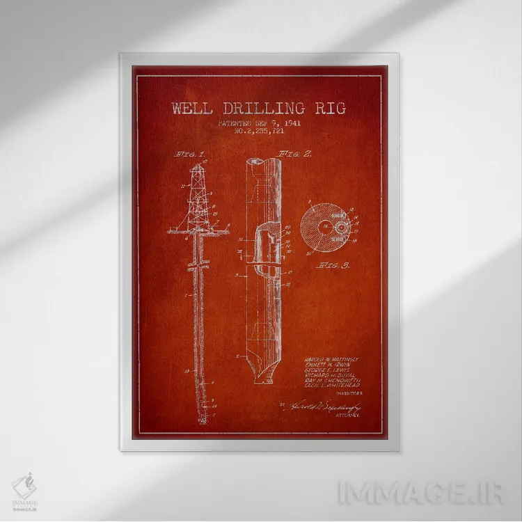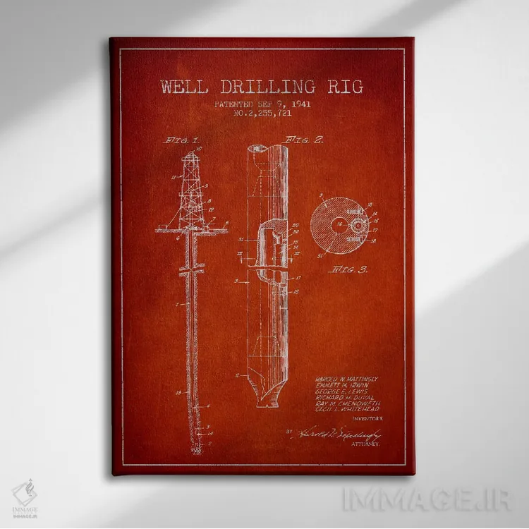 اگر دکور شما کلاسیک/رترو است، «نقشهٔ ثبت اختراع دکل نفتی قرمز» اثرِ «پیکسل کهنه (استودیو/نام هنری)» با سبک هنری کاملاًً مینشیند.