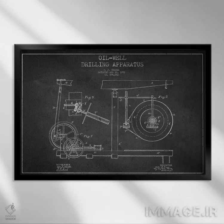 تابلو نقشهٔ ثبت اختراع دستگاه نفتی ذغالی اثر پیکسل کهنه (استودیو/نام هنری)
