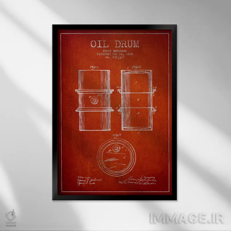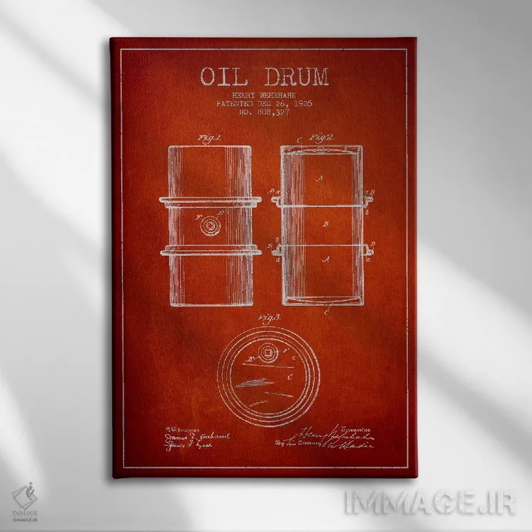 تابلو نقشهٔ ثبت اختراع بشکه نفت قرمز اثر پیکسل کهنه (استودیو/نام هنری)
