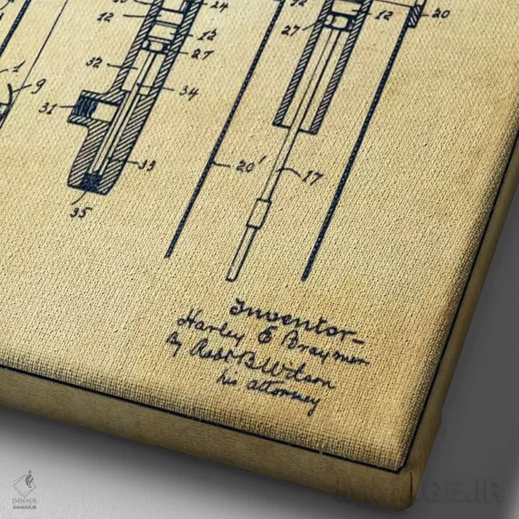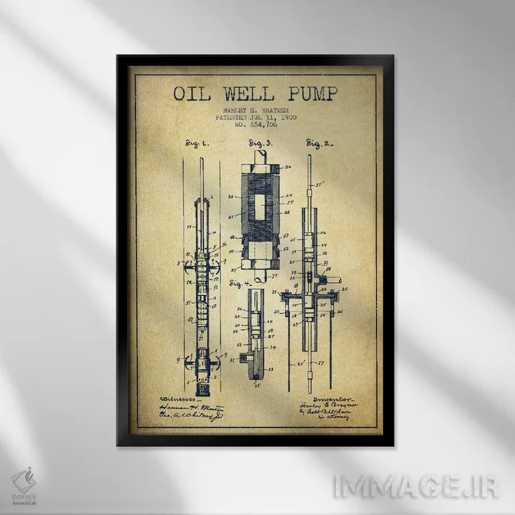 تابلو دکوراتیو نقشه ثبت اختراع پمپ نفت قدیمی اثر پیکسل کهنه