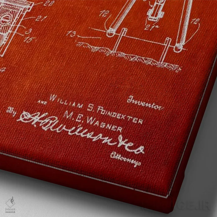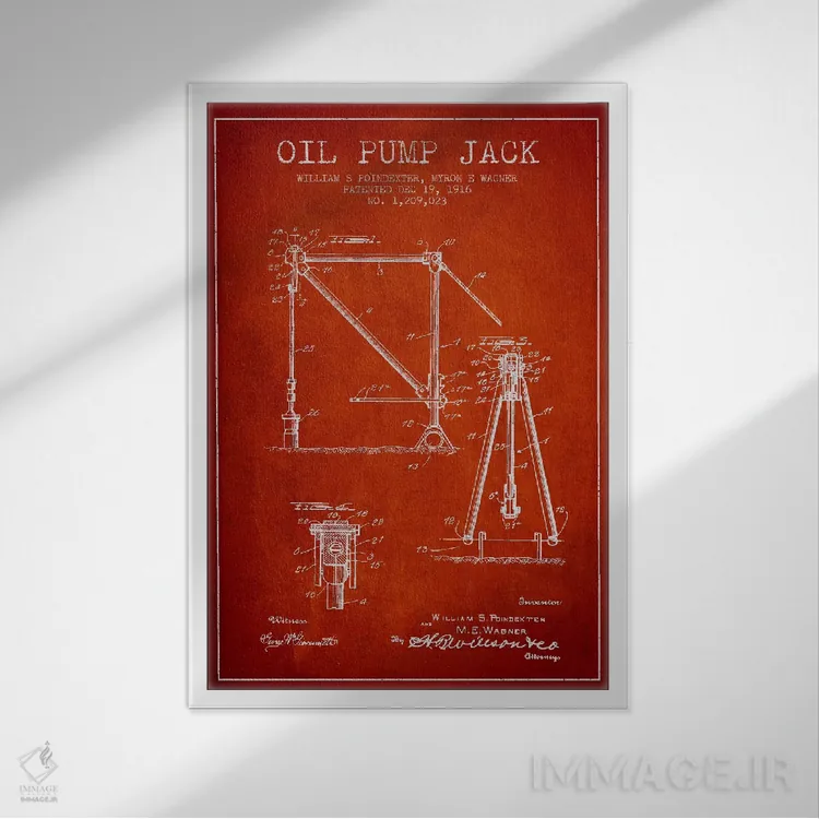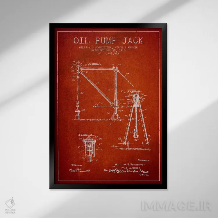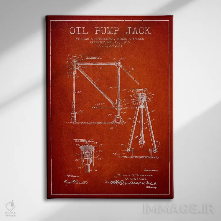 اگر دکور شما کلاسیک/رترو است، «نقشهٔ ثبت اختراع جک پمپ نفت قرمز» اثرِ «پیکسل کهنه (استودیو/نام هنری)» با سبک هنری کاملاًً مینشیند.