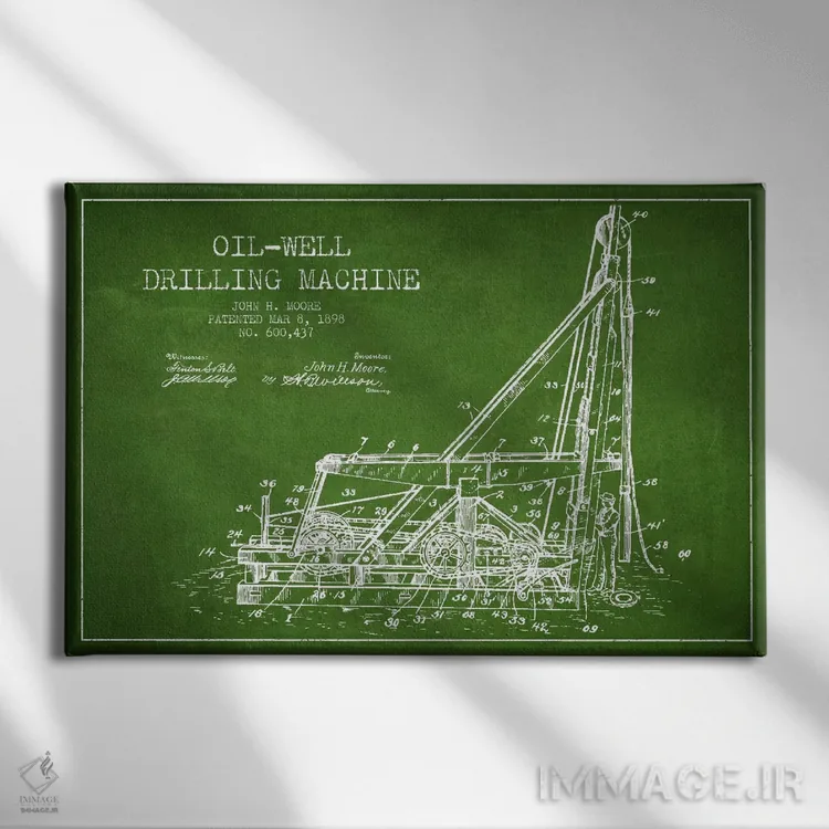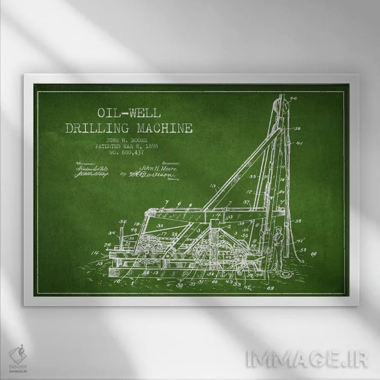 تابلو نقشهٔ ثبت اختراع حفاری چاه نفت (سبز) اثر پیکسل کهنه (استودیو/نام هنری)