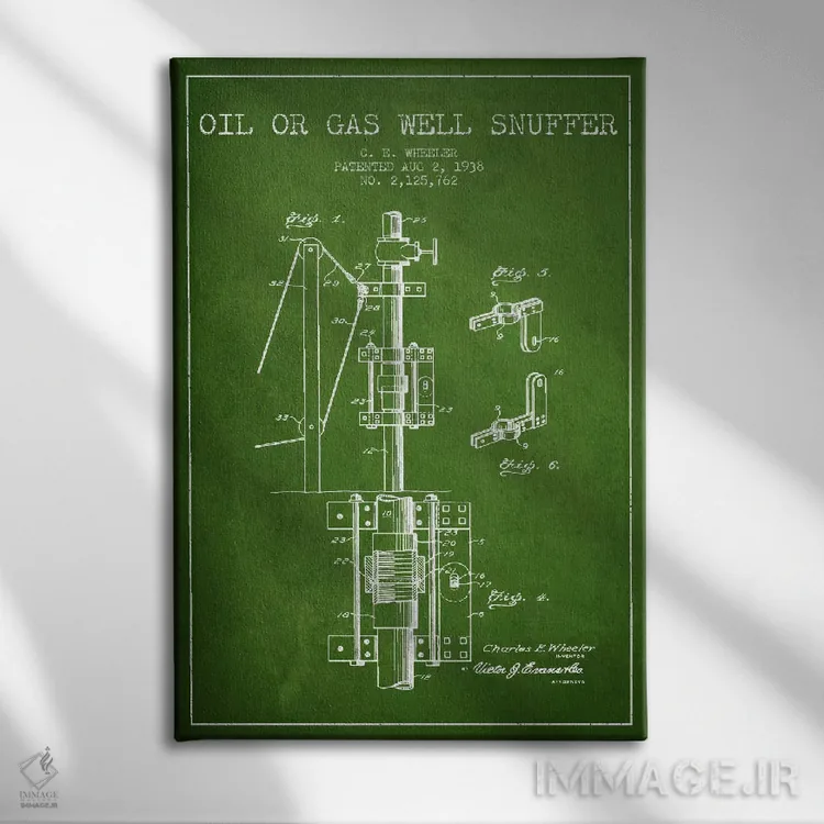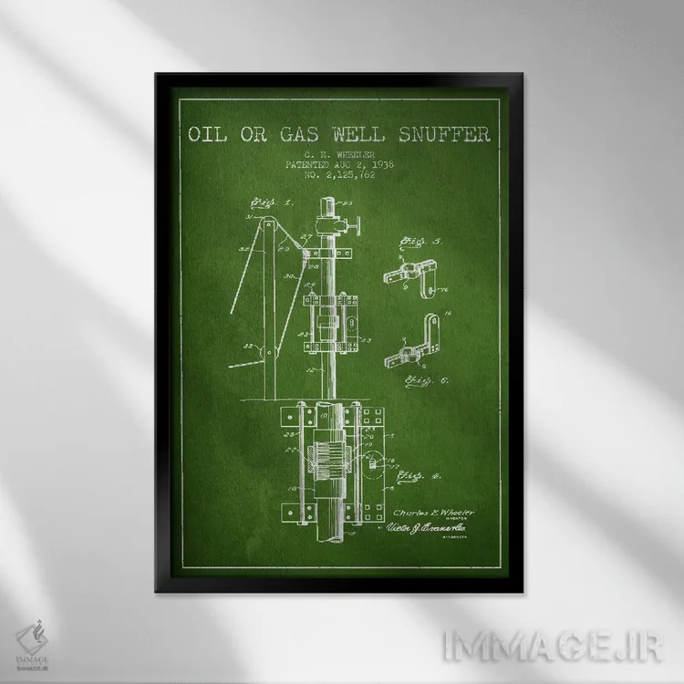 تابلو نقشهٔ ثبت اختراع خاموشکن نفت و گاز (سبز) اثر پیکسل کهنه (استودیو/نام هنری)
