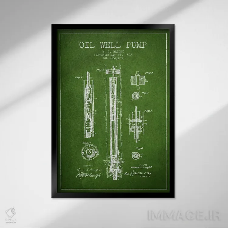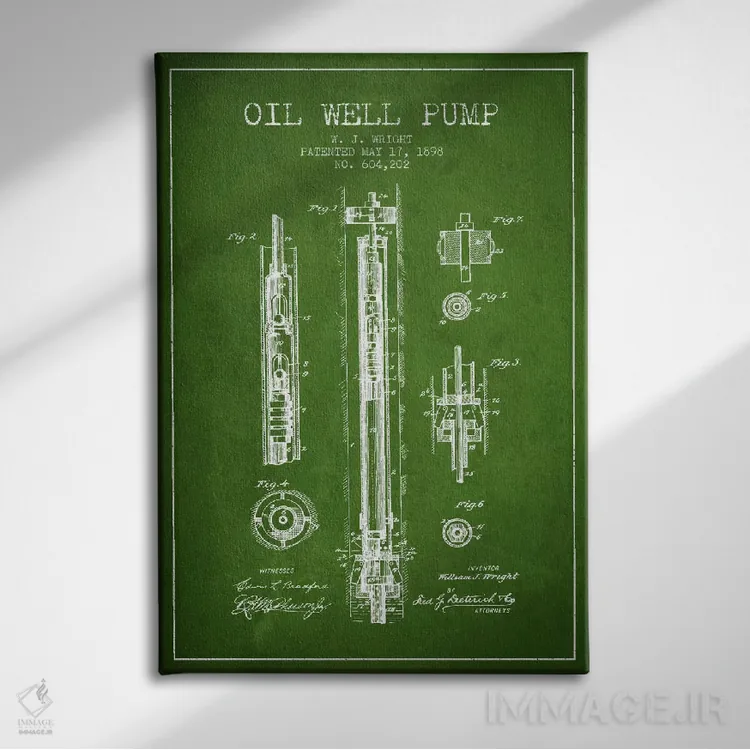 تابلو نقشهٔ ثبت اختراع پمپ چاه نفت (سبز) اثر پیکسل کهنه (استودیو/نام هنری)
