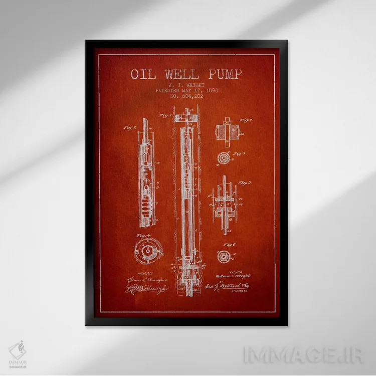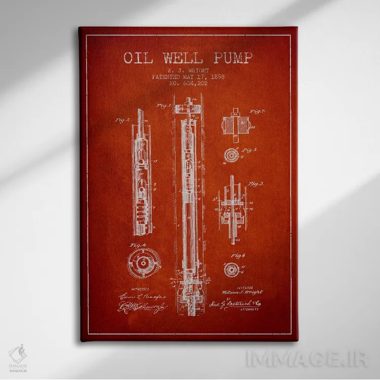 تابلو نقشهٔ ثبت اختراع پمپ چاه نفت (قرمز) اثر پیکسل کهنه (استودیو/نام هنری)