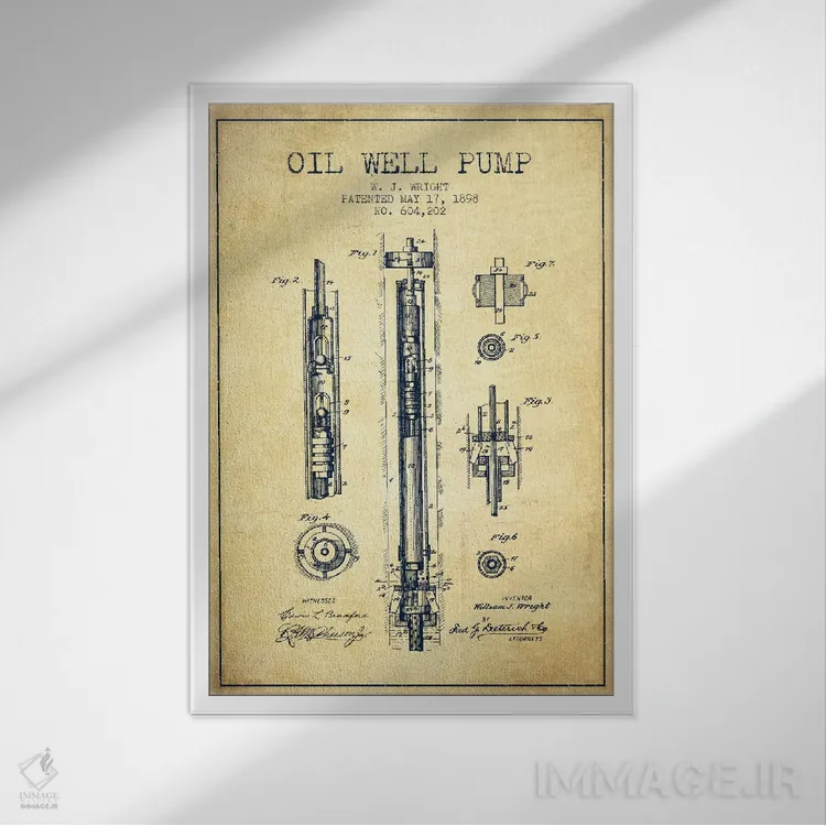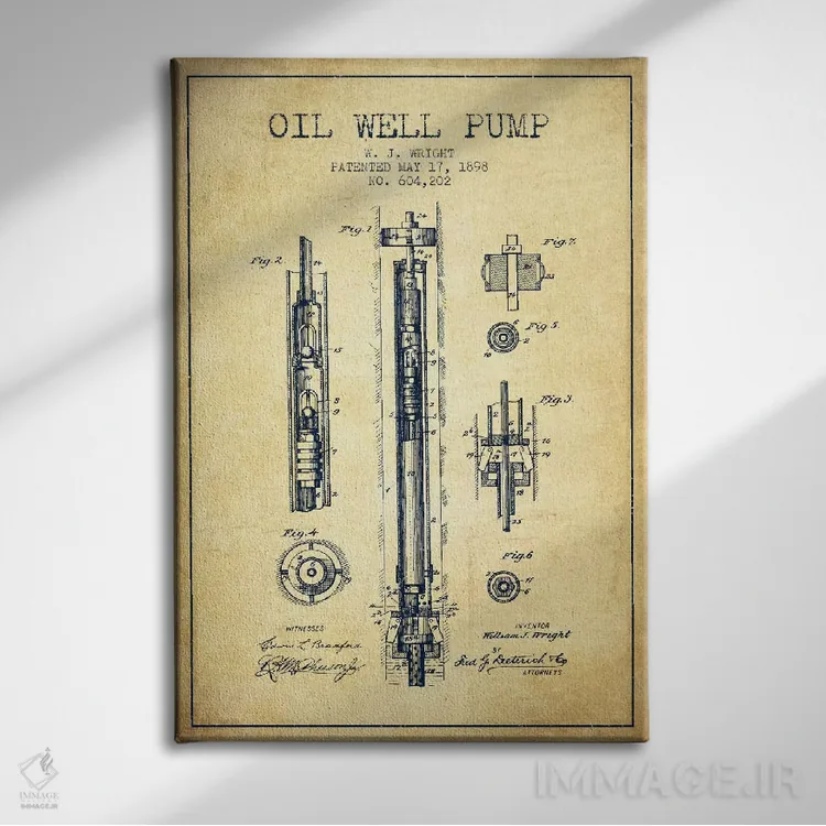 تابلو نقشهٔ ثبت اختراع پمپ چاه نفت (طرح قدیمی) اثر پیکسل کهنه (استودیو/نام هنری)