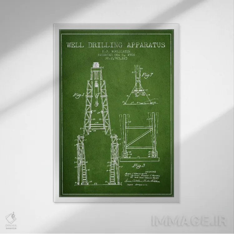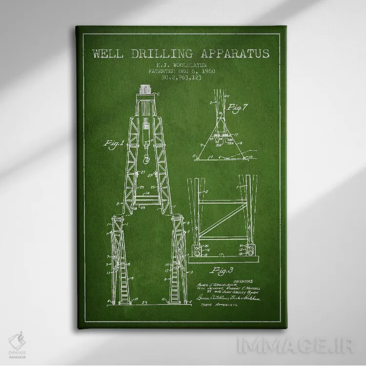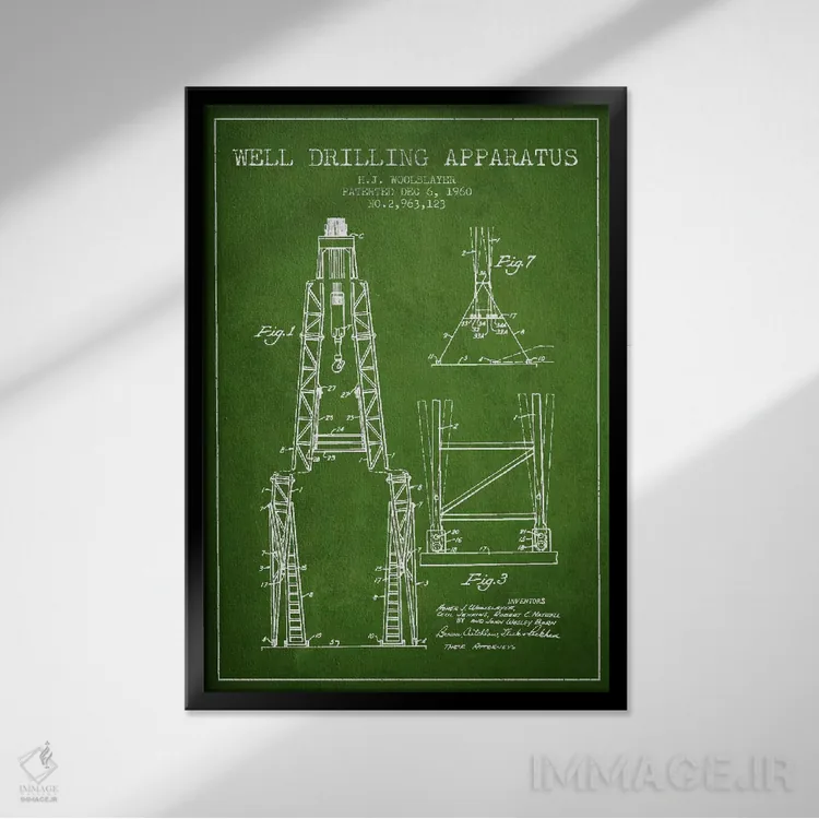 تابلو نقشهٔ ثبت اختراع دستگاه حفاری (سبز) اثر پیکسل کهنه (استودیو/نام هنری)