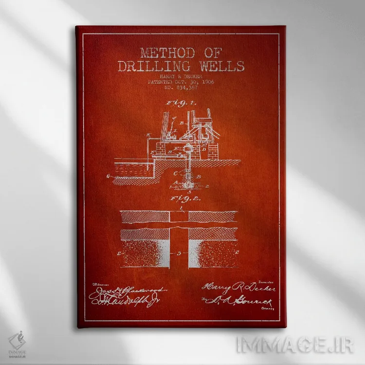 تابلو نقشهٔ ثبت اختراع روش حفاری چاه‌ها (قرمز) اثر پیکسل کهنه (استودیو/نام هنری) - نمای پرسپکتیو محصول