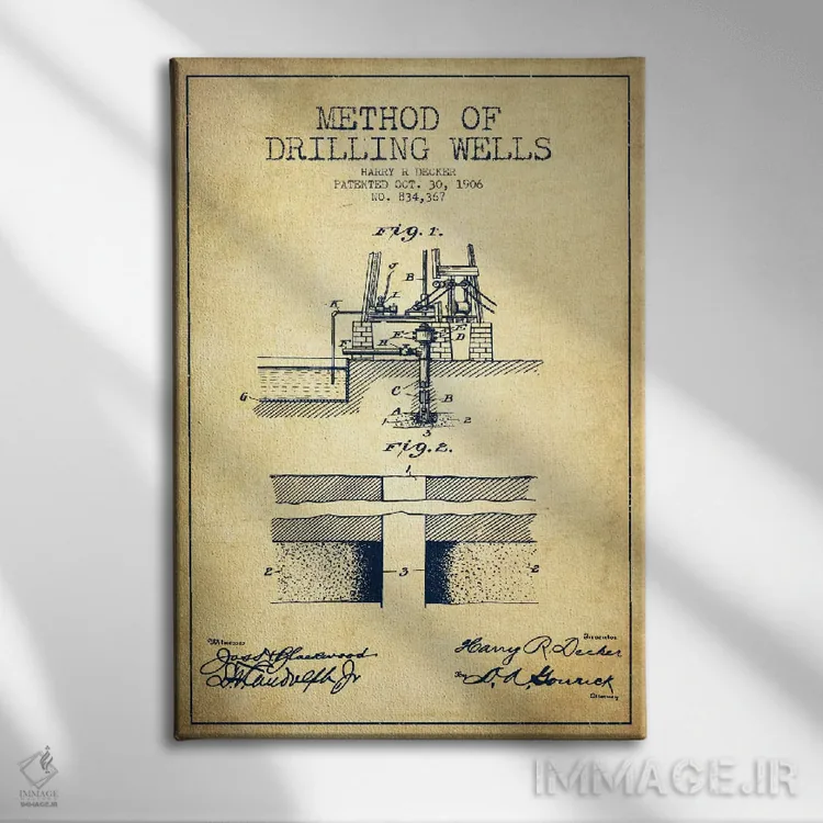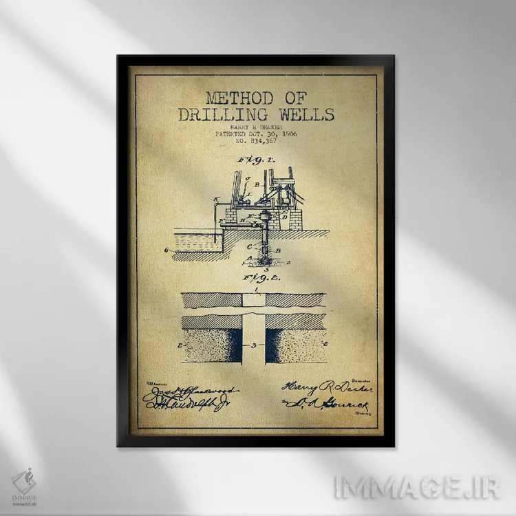 تابلو نقشهٔ ثبت اختراع روش حفاری چاهها (طرح قدیمی) اثر پیکسل کهنه (استودیو/نام هنری)