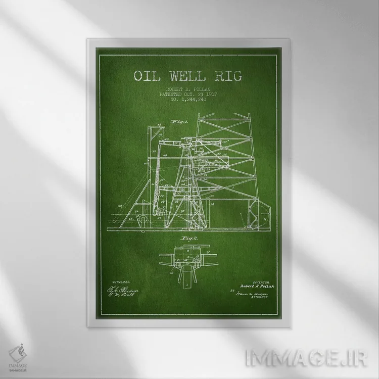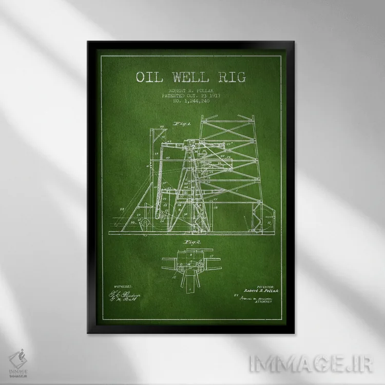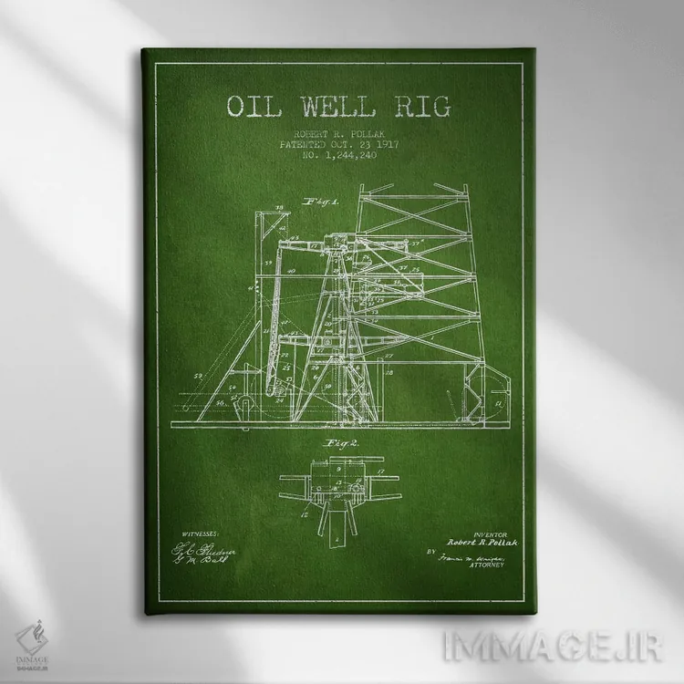 تابلو نقشهٔ ثبت اختراع دکل حفاری چاه نفت ۱ (سبز) اثر پیکسل کهنه (استودیو/نام هنری) - نمای پرسپکتیو محصول