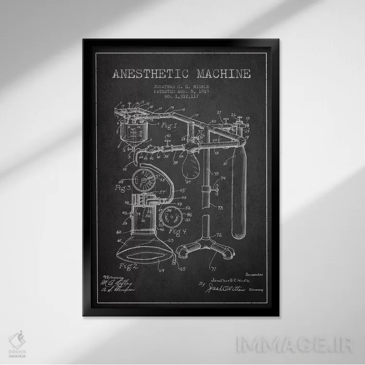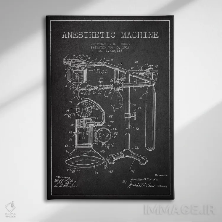 تابلو نقشهٔ ثبت اختراع دستگاه بیهوشی (زغالی) اثر پیکسل کهنه (استودیو/نام هنری)