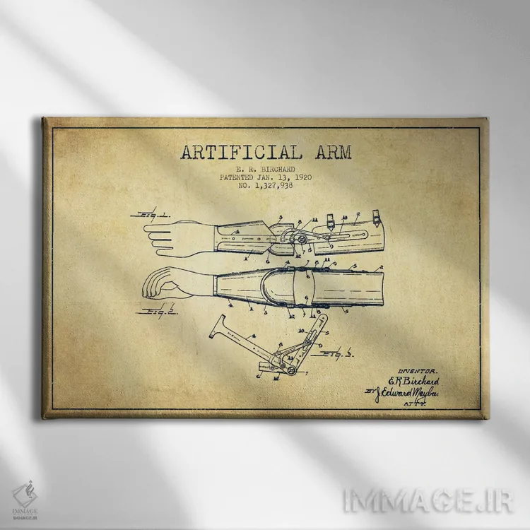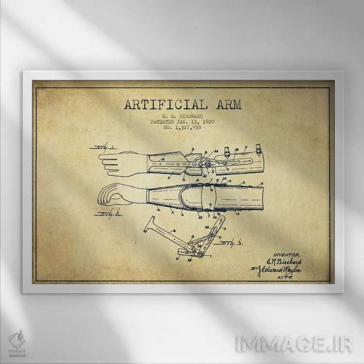 تابلو نقشهٔ ثبت اختراع دست مصنوعی (طرح قدیمی) اثر پیکسل کهنه (استودیو/نام هنری)