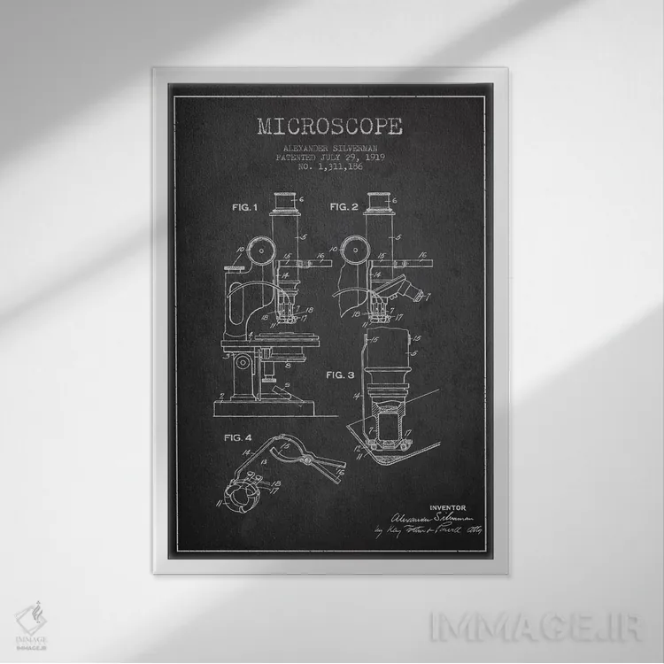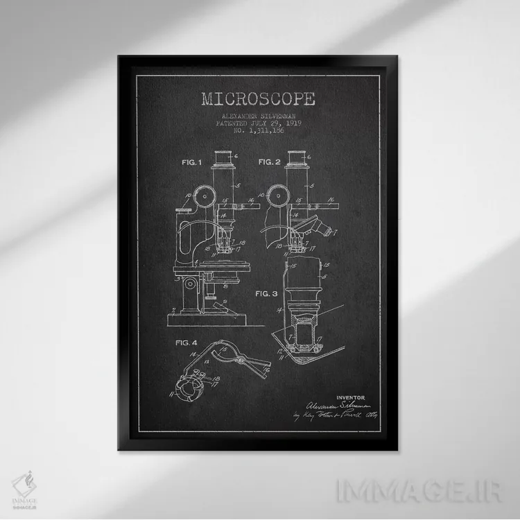 اگر دکور شما کلاسیک/رترو است، «نقشهٔ ثبت اختراع میکروسکوپ (زغالی)» اثرِ «پیکسل کهنه (استودیو/نام هنری)» با سبک هنری کاملاًً مینشیند.