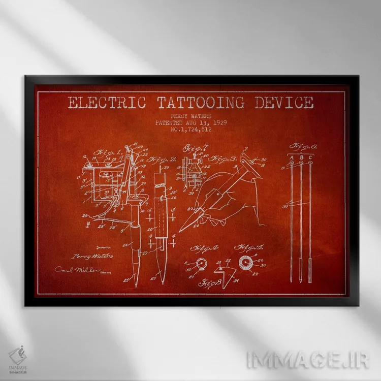 تابلو نقشهٔ ثبت اختراع دستگاه تاتو (قرمز) اثر پیکسل کهنه (استودیو/نام هنری)
