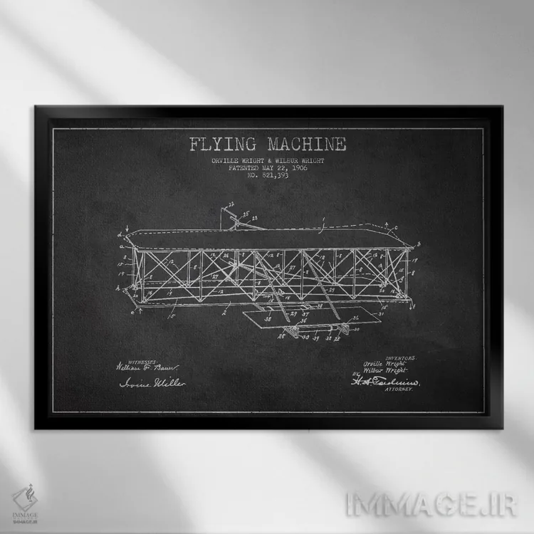 «نقشهٔ ثبت اختراع هواپیما (زغالی)» اثرِ «پیکسل کهنه (استودیو/نام هنری)» اگر به جزئیات کلاسیک و حس قدیمیِ شیک علاقه دارید، گزینهی خوبیست.