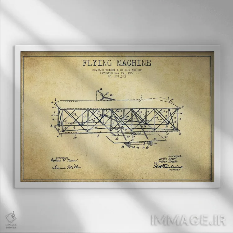 تابلو نقشهٔ ثبت اختراع قدیمی هواپیما اثر پیکسل کهنه (استودیو/نام هنری)