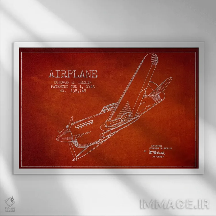 در «نقشهٔ ثبت اختراع هواپیما (قرمز)» اثرِ «پیکسل کهنه (استودیو/نام هنری)»، موضوعِ این اثر با زبانِ رترو روایت میشود؛ هم خاص است هم دکورپذیر.