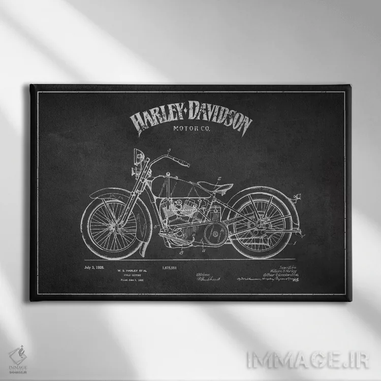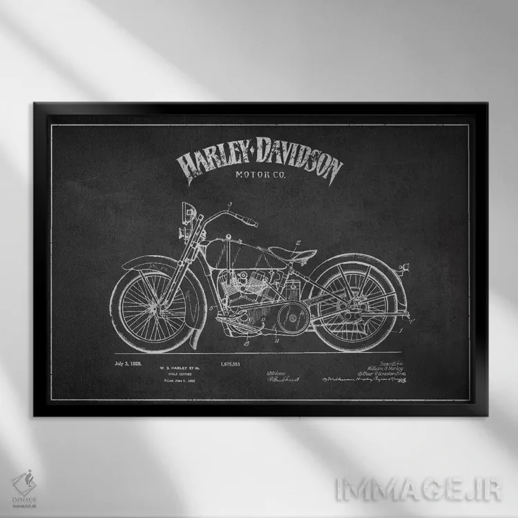 تابلو نقشه ثبت اختراع هارلی-دیویدسون (ذغالی) اثر پیکسل کهنه (استودیو/نام هنری)