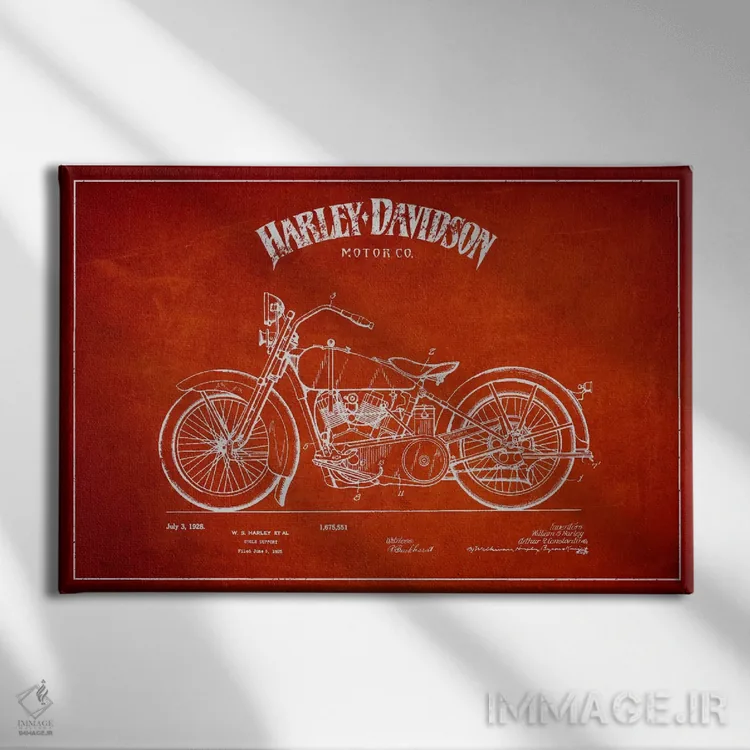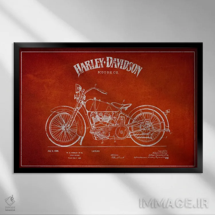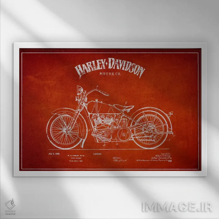 تابلو نقشه ثبت اختراع هارلی-دیویدسون (قرمز) اثر پیکسل کهنه (استودیو/نام هنری)