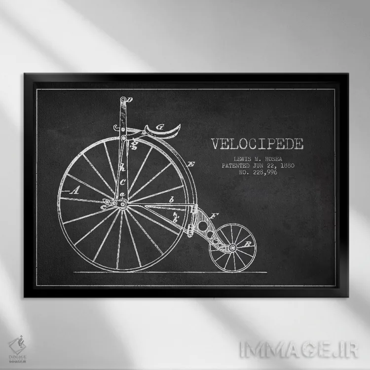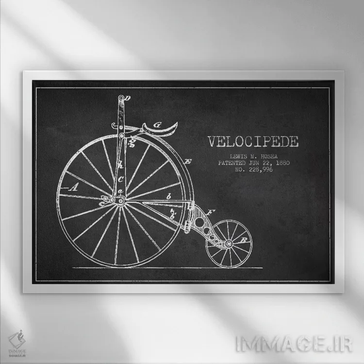 در «نقشه ثبت اختراع ویلوسپید هوزئا (ذغالی) (دوچرخه قدیمی)» اثرِ «پیکسل کهنه (استودیو/نام هنری)»، موضوعِ این اثر با زبانِ رترو روایت میشود؛ هم خاص است هم دکورپذیر.
