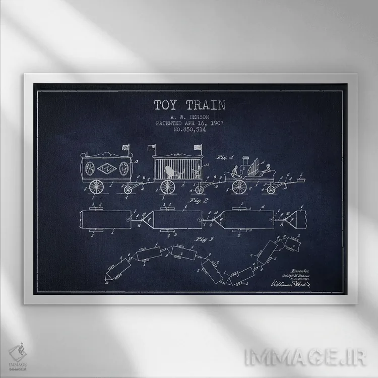 تابلو طرح ثبت اختراع قطار اسباب بازی آ. دبلیو. بنسون (سرمهای) اثر پیکسل کهنه (استودیو/نام هنری)