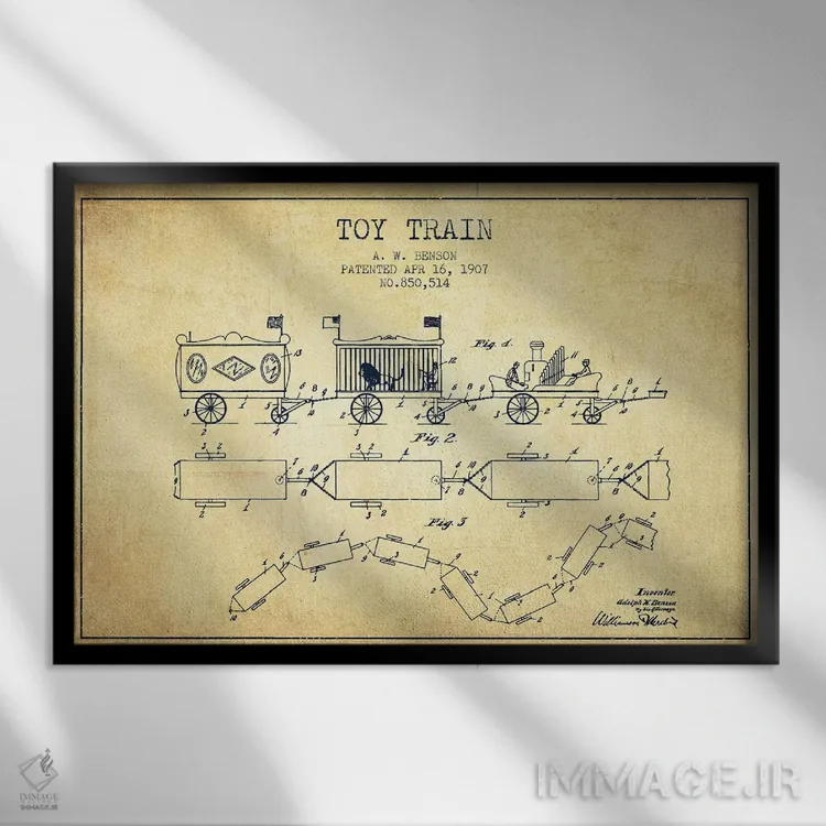 تابلو طرح ثبت اختراع قطار اسباب بازی آ. دبلیو. بنسون (وینتیج/قدیمی) اثر پیکسل کهنه (استودیو/نام هنری)