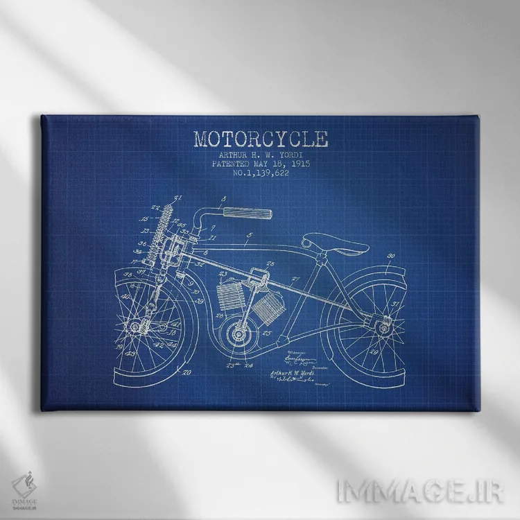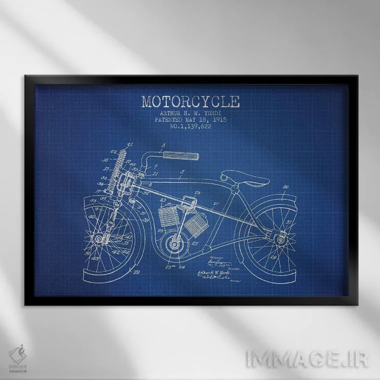 تابلو طرح ثبت اختراع موتورسیکلت آرتور اچ دبلیو یوردی (شبکه آبی) اثر پیکسل کهنه (استودیو/نام هنری)