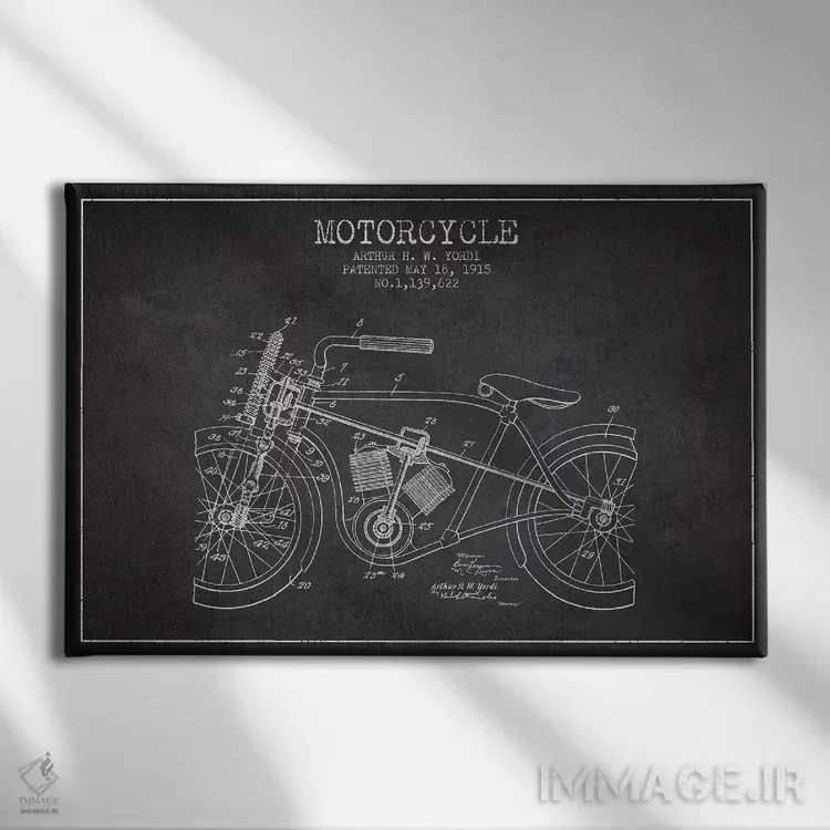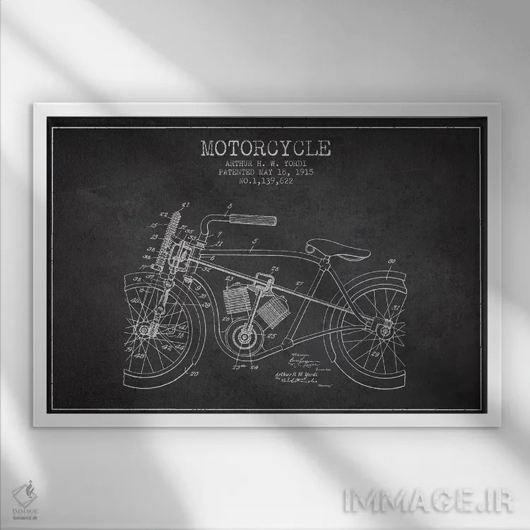 تابلو طرح ثبت اختراع موتورسیکلت آرتور اچ دبلیو یوردی (زغالی) اثر پیکسل کهنه (استودیو/نام هنری)
