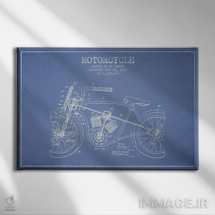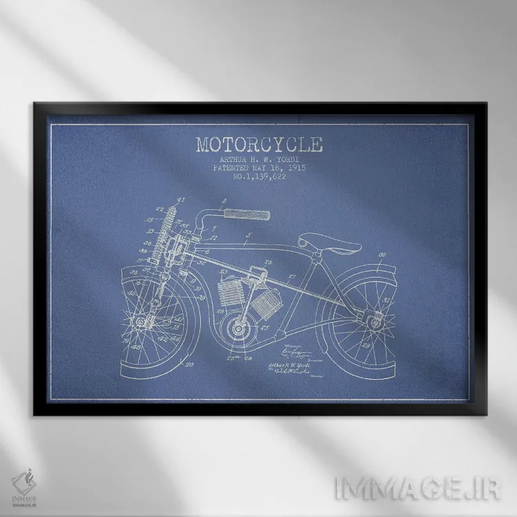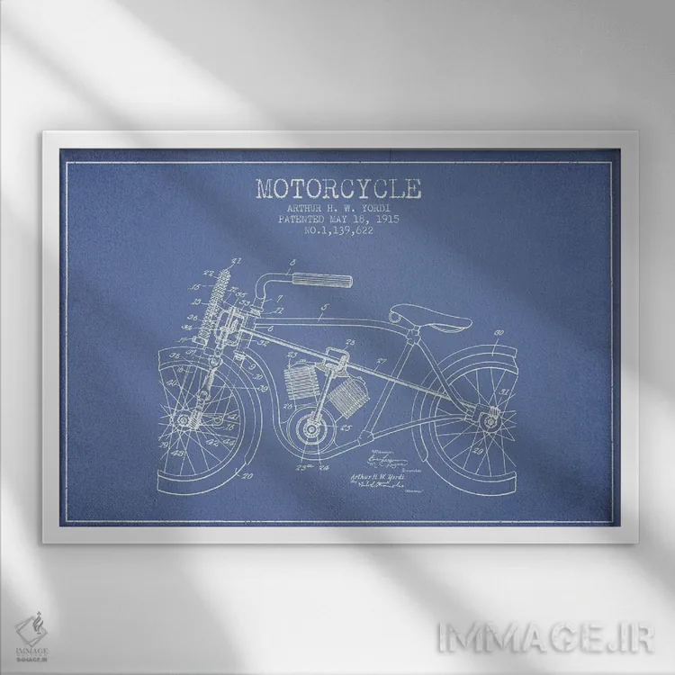 تابلو طرح ثبت اختراع موتورسیکلت آرتور اچ دبلیو یوردی (آبی روشن) اثر پیکسل کهنه (استودیو/نام هنری)
