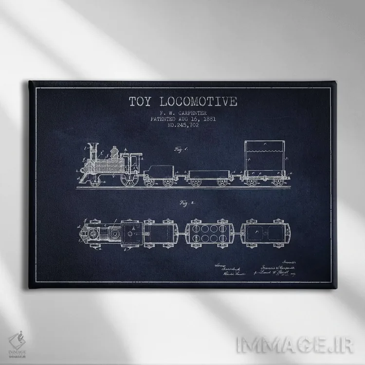 تابلو طرح پتنت لوکوموتیو اسباببازی اف.دبلیو. کارپنتر (آبی نفتی) اثر پیکسل کهنه (استودیو/نام هنری)