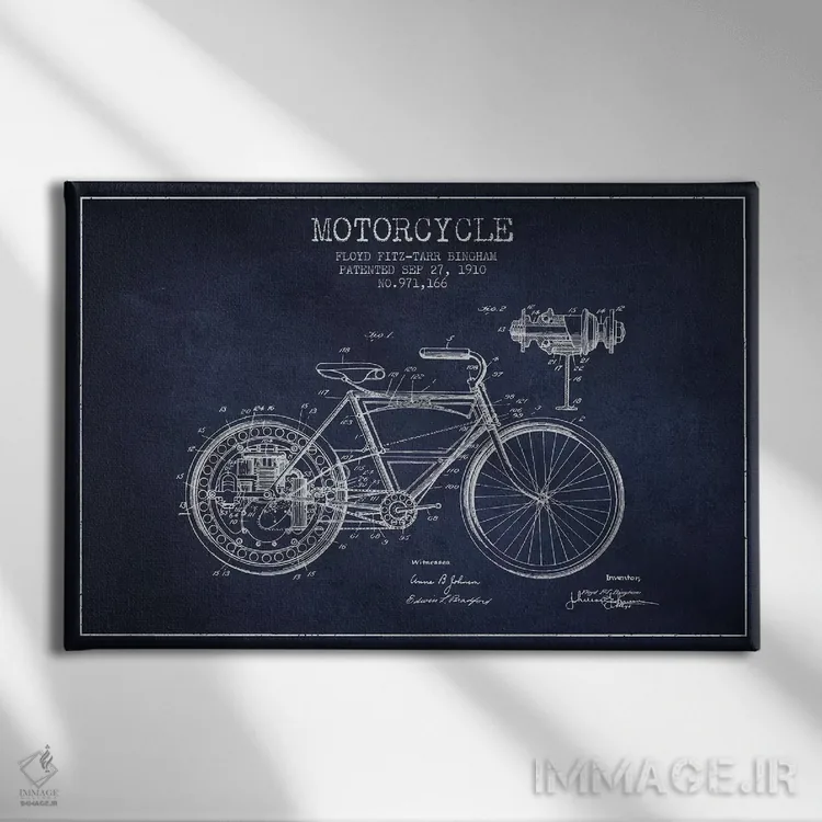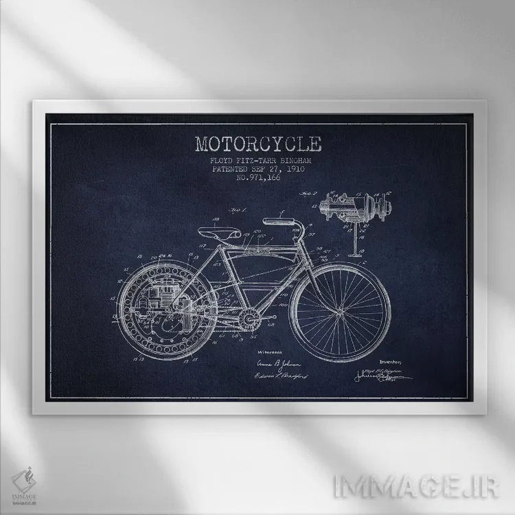 تابلو طرح پتنت موتورسیکلت فلوید بینگهام (آبی نفتی) اثر پیکسل کهنه (استودیو/نام هنری)