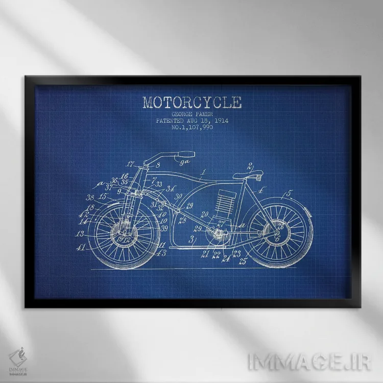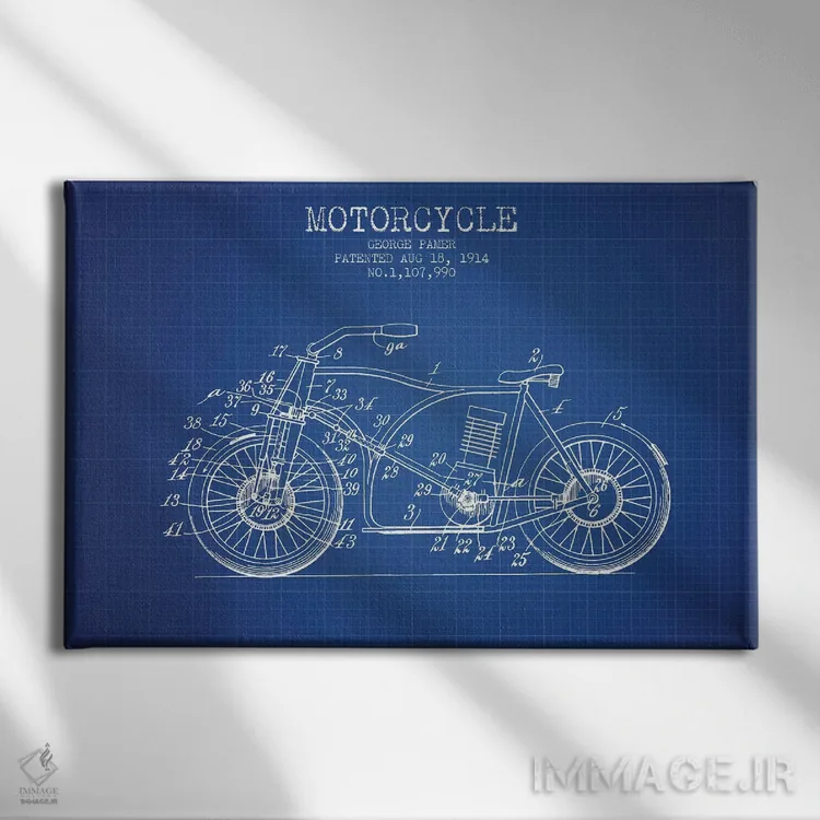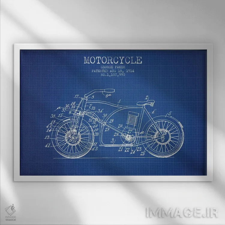 تابلو طرح اختراع موتورسیکلت جورج پامر (شبکه آبی) اثر پیکسل کهنه (استودیو/نام هنری)
