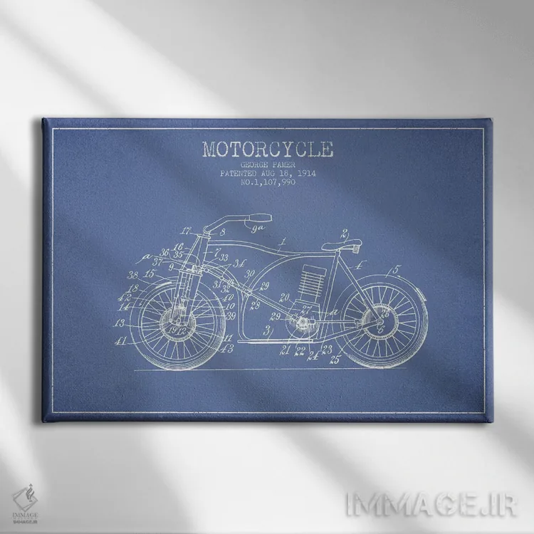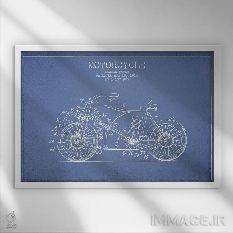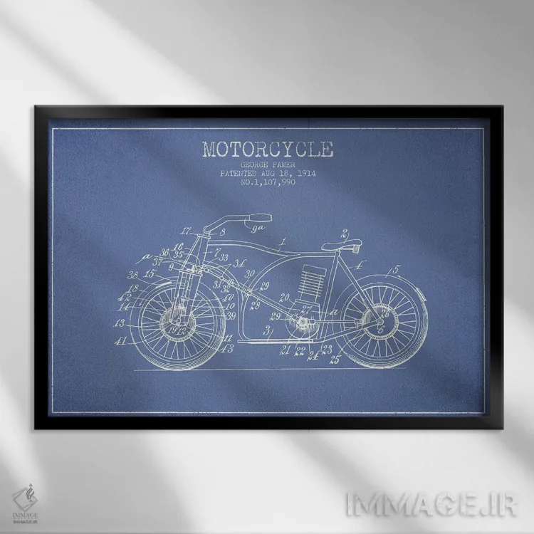 تابلو طرح اختراع موتورسیکلت جورج پامر (آبی روشن) اثر پیکسل کهنه (استودیو/نام هنری)