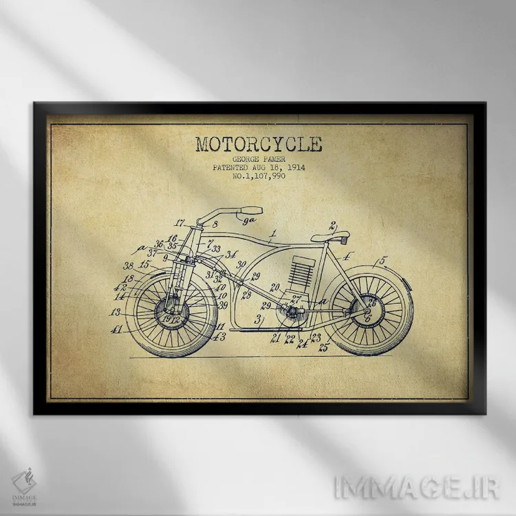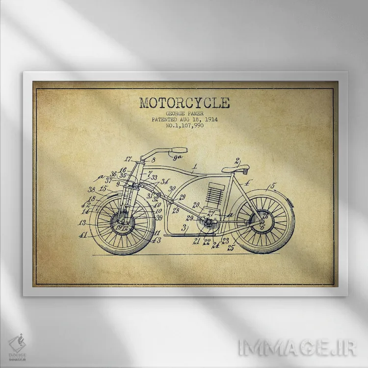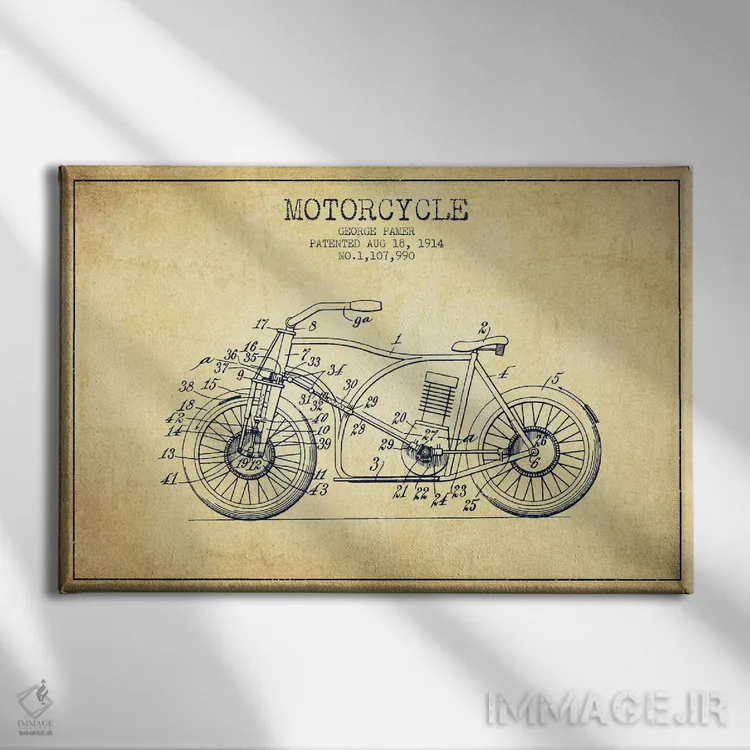 تابلو طرح قدیمی اختراع موتورسیکلت جورج پامر اثر پیکسل کهنه (استودیو/نام هنری)