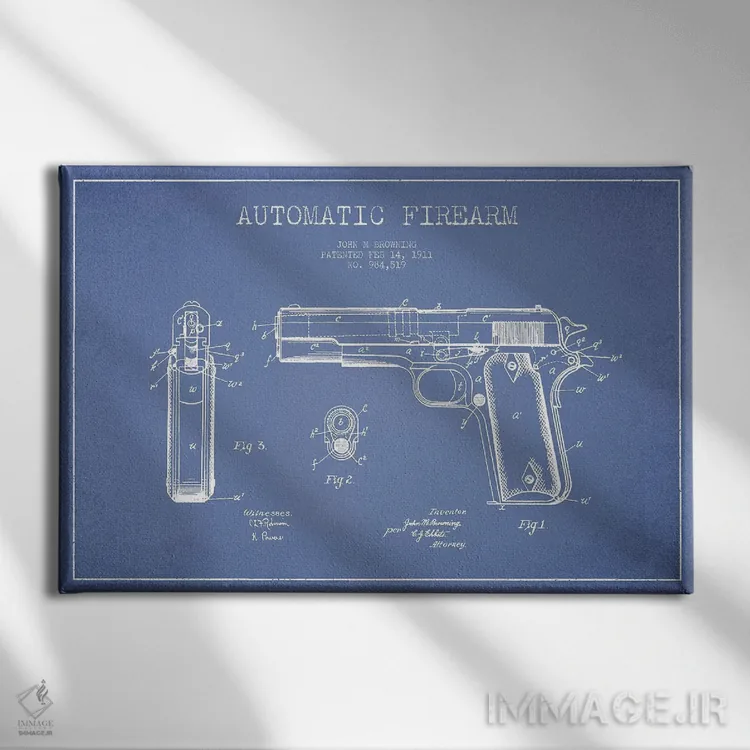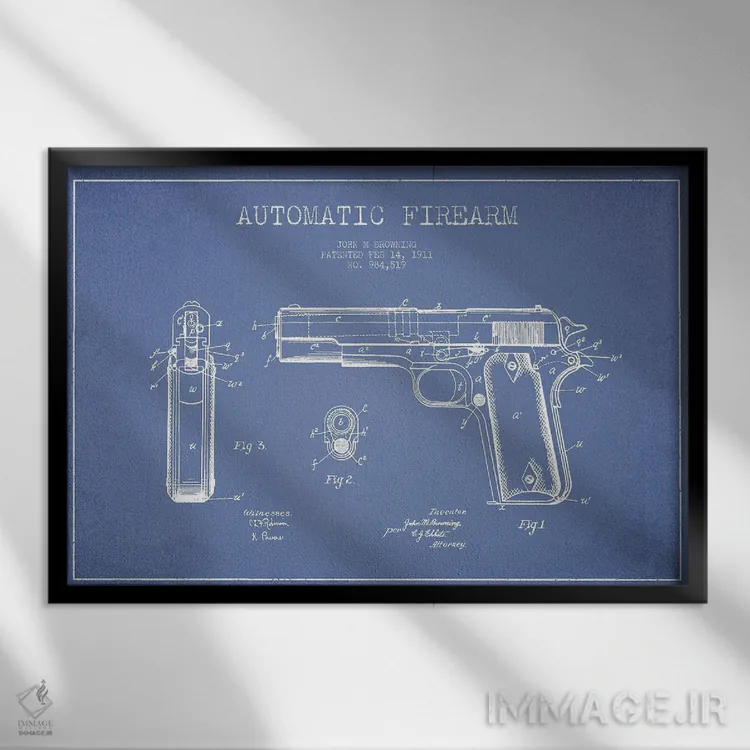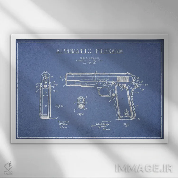 «طرح پتنت اسلحه خودکار جی.ام. براونینگ (آبی روشن)» اثرِ «پیکسل کهنه (استودیو/نام هنری)» با حالوهوای هنری، حس نوستالژیِ کنترلشدهای به فضا میدهد؛ مناسب برای چیدمانهای رترو و کلاسیک.