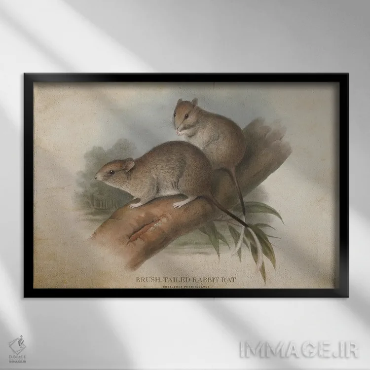 اگر به آثار حیوانات علاقه دارید، «موش خرگوشی دمبرس (وینتیج)» اثرِ «پیکسل کهنه (استودیو/نام هنری)» حس طبیعت را بیدغدغه وارد خانه میکند، برای خانههایی با چوب و پارچههای گرم گزینهٔ مناسبیست. با قاب چوبی یا مشکی، حس مرتبتری پیدا میکند.