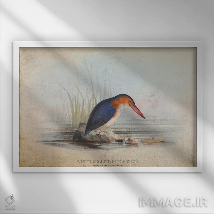 تابلو ماهی‌خورک شکم‌سفید (وینتیج) اثر پیکسل کهنه (استودیو/نام هنری) - نمای قاب‌دار سفید