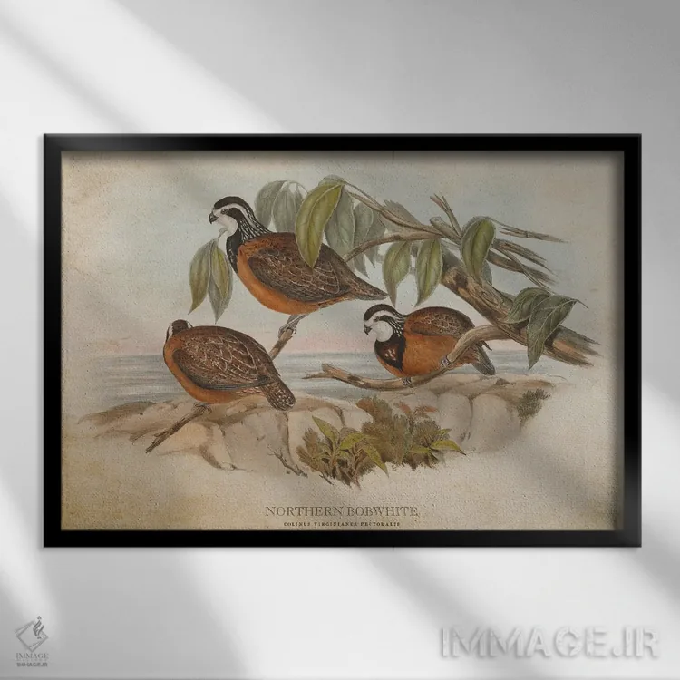 تابلو دکوراتیوِ «بابوایت شمالی (وینتیج) (قرقاول کوچک آمریکای شمالی)» با موضوع حیوانات؛ هم برای نشیمن و هم برای اتاق کودک انتخاب خوبی است اثرِ «پیکسل کهنه (استودیو/نام هنری)».