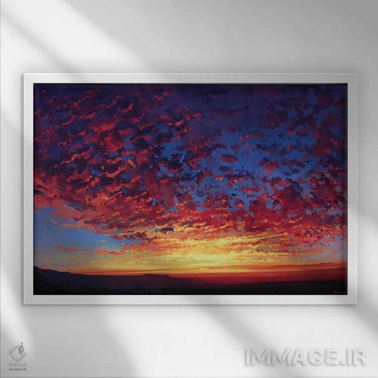 براساس پالت ترکیبی اثر، قاب تیک گرم (چوبی) پیشنهاد اول است و مشکی مات (فریم متوسط) مکمل. برای سفارشهای پروژهای با ابعاد و قابهای اختصاصی با ایماژ در تماس باشید.