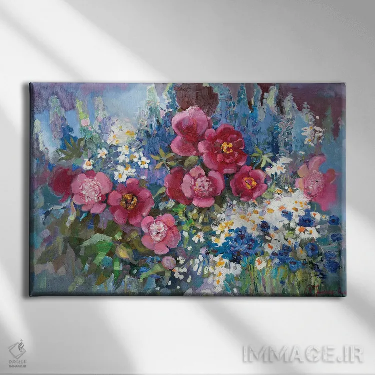 برای دیواری که میخواهید نرمتر دیده شود، «تختگلی با گل صدتومانی (نوعی گل بزرگ)» اثرِ «آناستاسیا گریگوریوا» چیدمان را از خشکی بیرون میآورد؛ برای هدیه دادن انتخابی خوشسلیقه است. همیشه بهروز میماند و با فصلها خوب کنار میآید.
