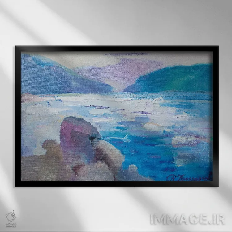 براساس پالت سرد اثر، قاب سفید مات (فریم باریک) پیشنهاد اول است و نقرهای برسخورده (متالیک) مکمل. برای سفارشهای پروژهای با ابعاد و قابهای اختصاصی با ایماژ در تماس باشید.