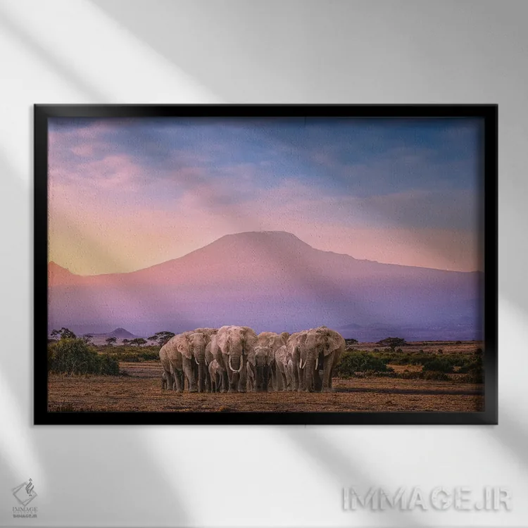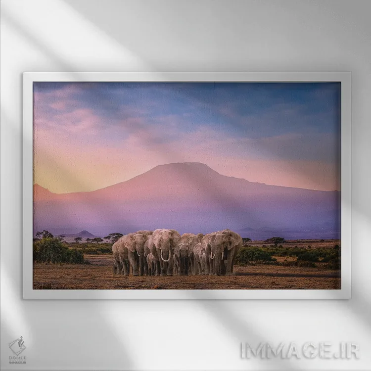 تابلو گله فیل‌های آفریقا با کوه کلیمانجارو اثر الکس جی پرز