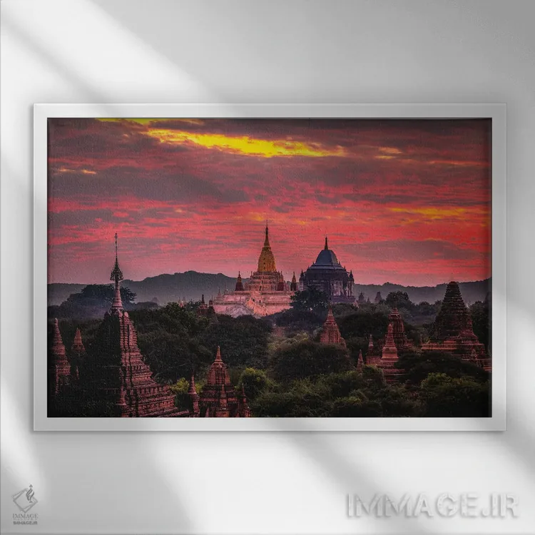 تابلو غروب معبد باگان قدیم میانمار اثر الکس جی پرز