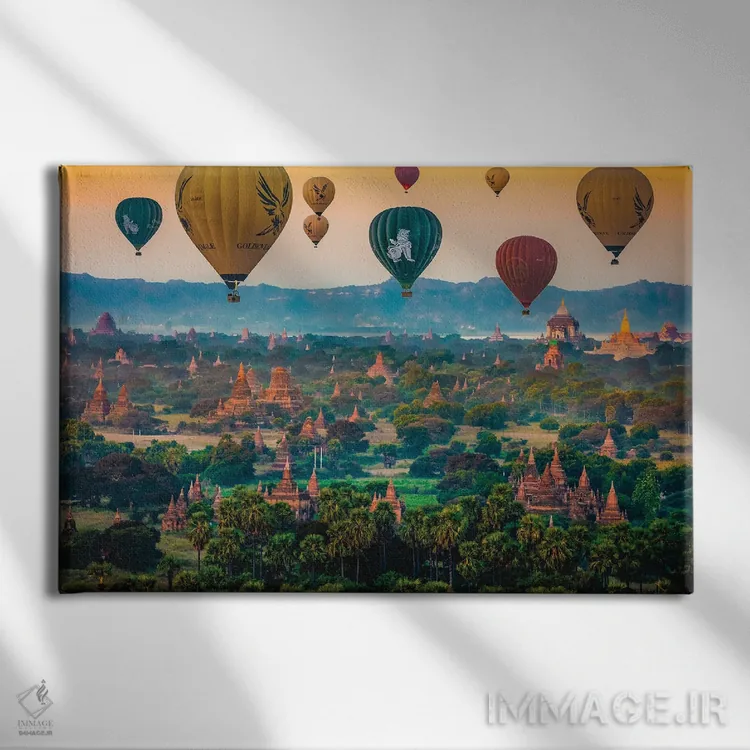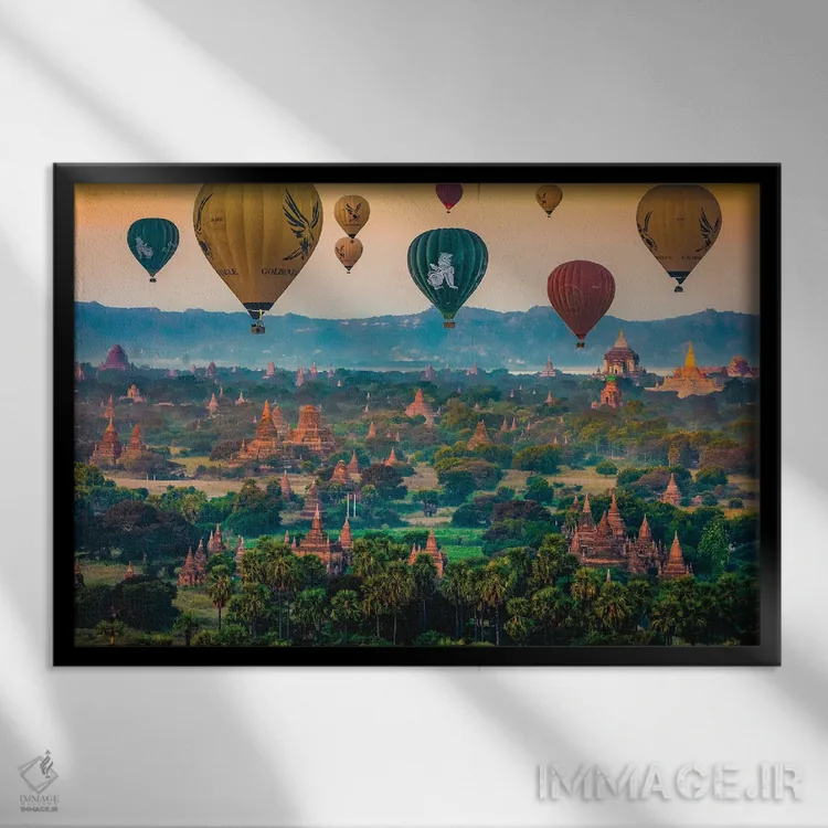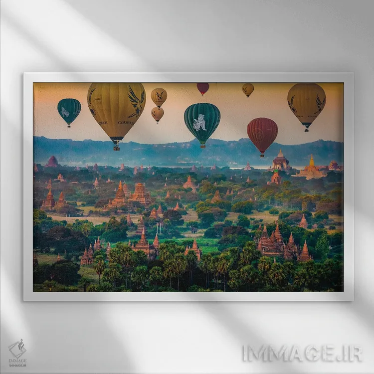 تابلو معبدهای باگان قدیم با بالن هوای گرم میانمار (قسمت اول) اثر الکس جی پرز - نمای پرسپکتیو محصول