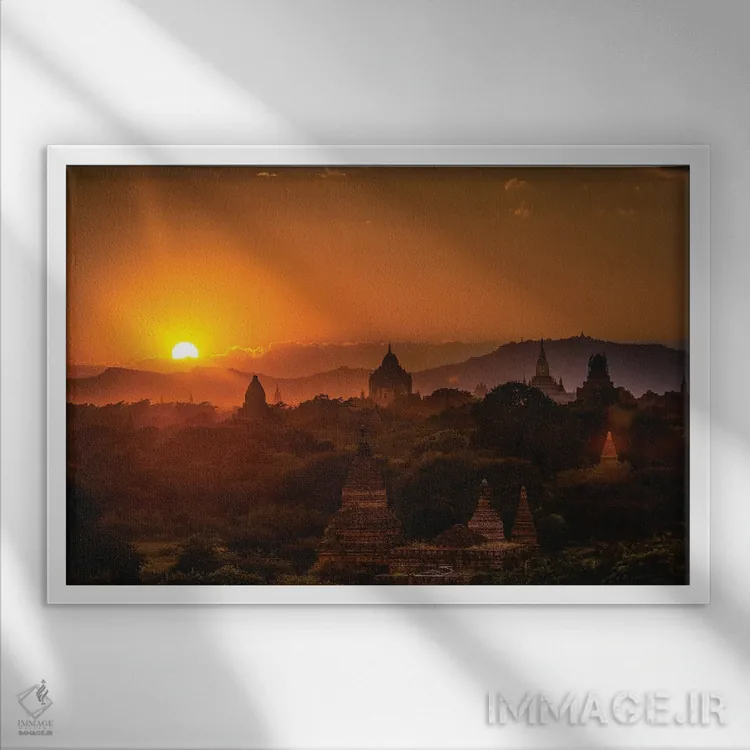 تابلو غروب معبد میانمار (قسمت سوم) اثر الکس جی پرز - نمای قاب‌دار سفید